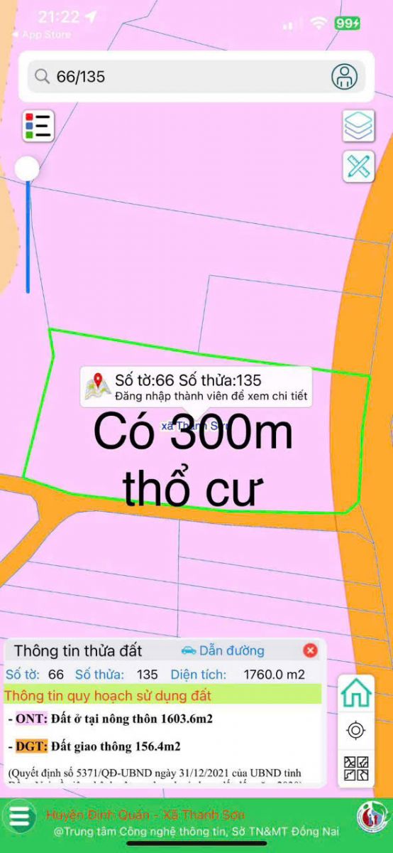Diện tích ; 1760m2 trong đó có 300m2 thổ cư