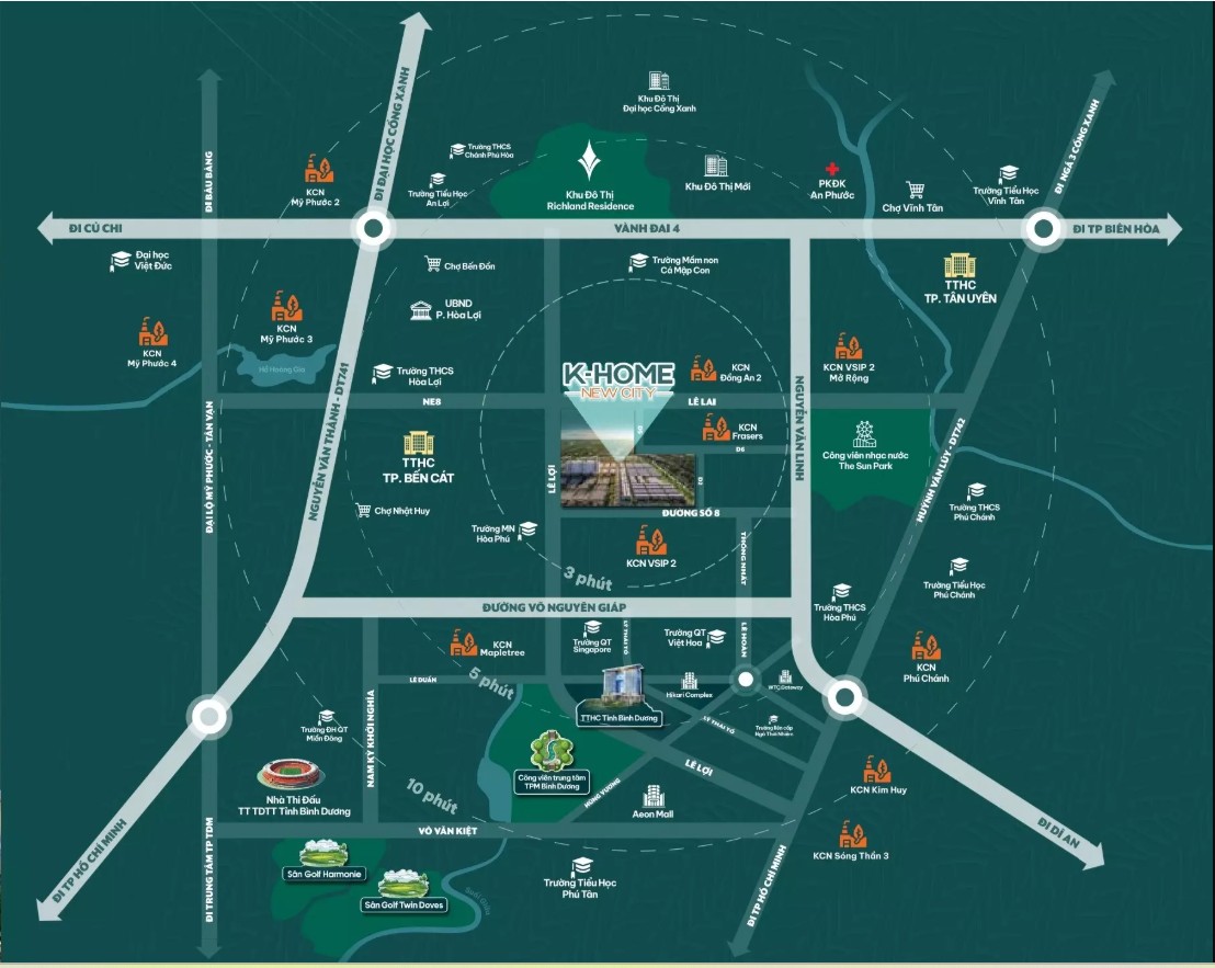 K Home New City – kiệt tác khu đô thị đẳng cấp tại phường Bình Dương thành phố Hồ Chí Minh mới – mở ra chân trời sống thượng lưu. Với thiết kế chuẩn Singapore từ Surbana Jurong và tầm nhìn của Kim Oanh Land, dự án trên đại lộ D5, Phường Bình Dương là nơi hội tụ không gian xanh xa hoa, tiện ích đỉnh cao từ công viên lộng lẫy đến shophouse thời thượng. K Home New City không chỉ là nhà, mà là giấc mơ an cư, nơi bạn chạm đến lối sống đẳng cấp tại một phường trung tâm thành phố Hồ Chí Minh mới.