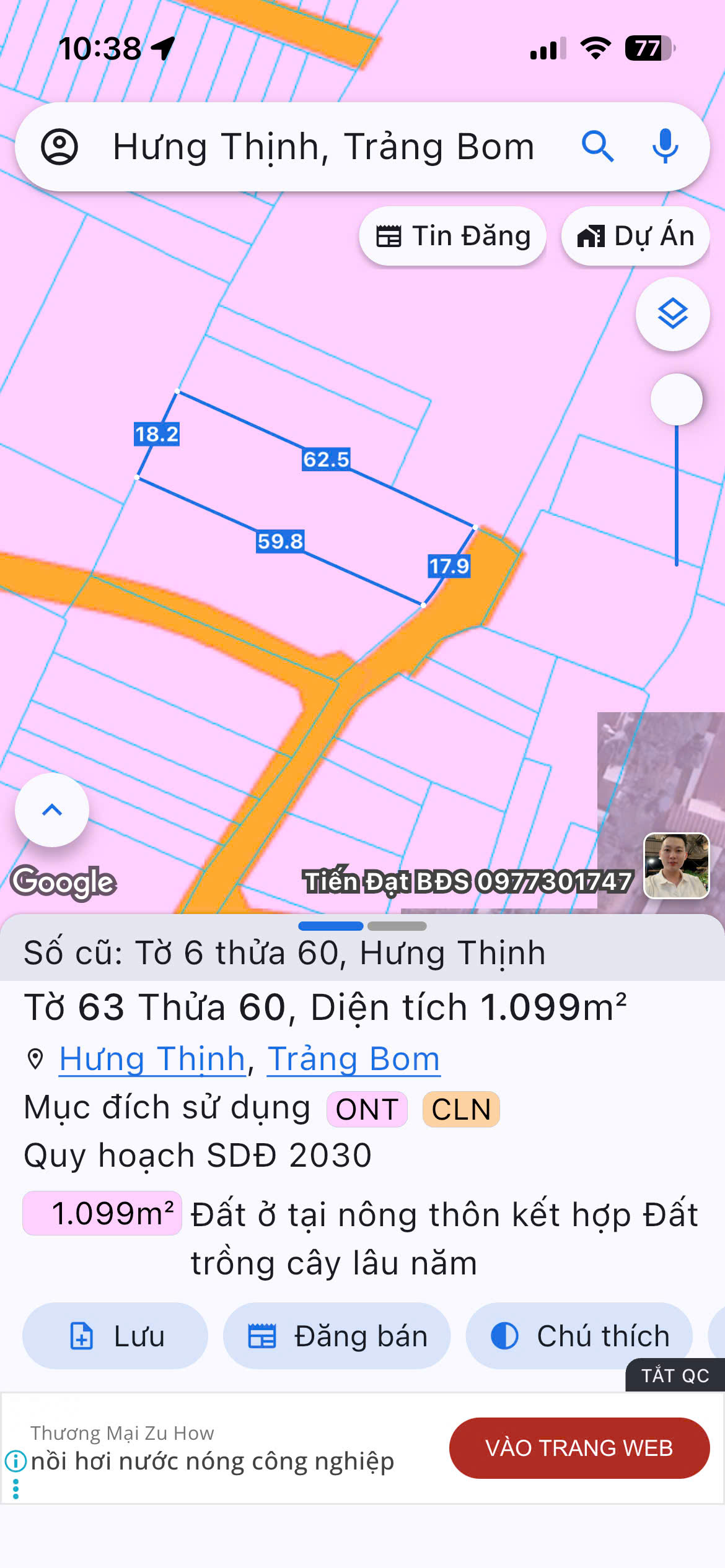 Chủ gửi bán đất hưng thịnh - trảng bom - đồng nai